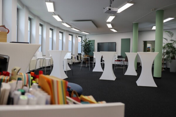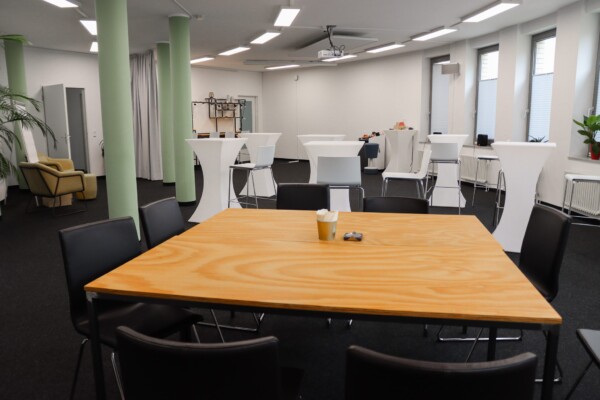 Der Workshopraum XL ist für Gruppen bis zu 50 Personen ausgelegt und überzeugt durch seine flexible Gestaltung. Ausgestattet mit einem interaktiven Touchdisplay, Leinwand und Beamer, eignet er sich ideal für Seminare, Workshops oder Team-Meetings. Für angenehmes Arbeiten sorgen eine mobile HEPA-Luftfilteranlage und High-Speed-WLAN. Getränke und Catering können nach Wunsch hinzugebucht werden. Der Raum lässt sich individuell möblieren – von Seminarbestuhlung bis zu kommunikativen Gruppensettings.
