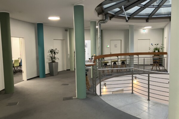 Unserer Rotunde ist ein lichtdurchfluteter, kreisförmiger Treffpunkt direkt vor unseren Meetingräumen. Hier erwarten Euch frisches Frühstück, aromatischer Kaffee und genug Raum, um miteinander ins Gespräch zu kommen. Die Rotunde kann auch exklusiv gebucht werden – ideal für besondere Anlässe, Team-Events oder Workshops. Dank der offenen Architektur eignet sie sich zudem hervorragend für Präsentationen und Ansprachen und schafft damit einen angenehmen Rahmen für inspirierende Momente.