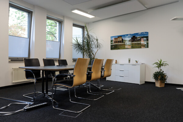 Unser Meetingraum L ist der ideale Ort für Besprechungen, Workshops oder Konferenzen mit bis zu 12 Teilnehmenden. Der Raum besticht durch eine klassische, hochwertige Ausstattung: Konferenztisch, Beamer mit Leinwand sowie High‑Speed‑WLAN sorgen dafür, dass Deine Präsentationen und Meetings reibungslos laufen. Genug Platz, gute Technik und professionelle Umgebung machen den Meetingraum L perfekt für Teams, externe Geschäftspartner oder interne Meetings. Zusätzlich bieten wir Euch eine komfortable Infrastruktur rund um Getränke-Flats sowie die Möglichkeit, Catering oder Snackboxen zu buchen.